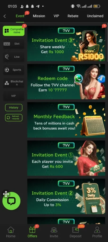 Invite your friends to join the 7VV Bet App and earn commission every time they play. You can build a steady income stream just by sharing your link.